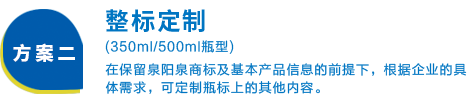 兩種定制方案靈活可選,為您量身定做企業(yè)專屬的長白山天然礦泉水,展現(xiàn)企業(yè)個性,彰顯企業(yè)文化,提升企業(yè)形象,助力商務(wù)成功!