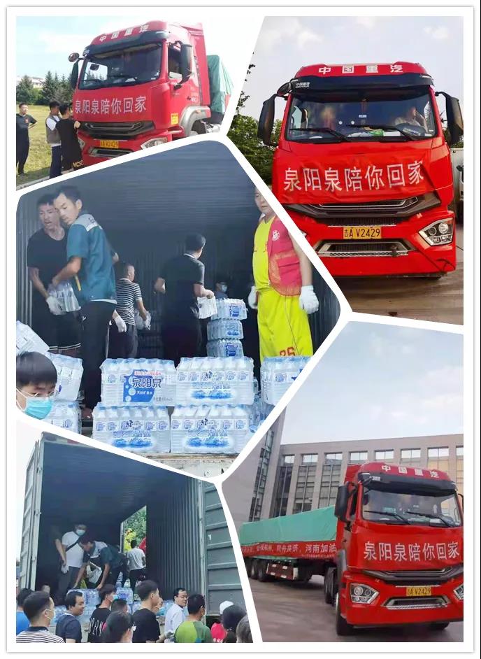 ? ? ? 今年7月中旬,河南省出現(xiàn)持續(xù)性極端強(qiáng)降雨,造成鄭州、新鄉(xiāng)、安陽(yáng)、鶴壁等多個(gè)縣市、鄉(xiāng)鎮(zhèn)受災(zāi)。河南人民群眾的生命和財(cái)產(chǎn)安全受到威脅。洪水肆虐,災(zāi)情牽動(dòng)著全國(guó)人民的心。2021年7月25日,吉林森工集團(tuán)泉陽(yáng)泉飲品有限公司從泉陽(yáng)工廠整裝出發(fā),穿越1800公里,馳援鄭州,為河南人民送去必要的救災(zāi)物資。